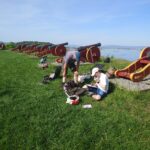 Dagen begynte med fantastisk vær. Solskinn og blå himmel. På dette tidspunktet var det ikke mange som var på vei mot øyene, noe som var en fordel når vi skulle finne plass til antenner. Vel fremme på Hovedøya, fant vi veien til Vestre kanonbatteri. På gressletta ved kanonene monterte vi opp flere antenner og satte opp flere radioer. Ikke bare for portabeltesten, men også for POTA-aktivering. Området vi var på, er en del av Vestre Hovedøya Naturreservat. Dette er en registrert POTA-park med referanse NO-2417. På gruppemøte tirsdag samme uke, holdt LB9EH Bjørn et foredrag om POTA, og mange så derfor frem til å forsøke seg på dette med Parks on the Air.