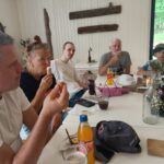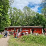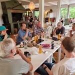 Etter nedrigging ble dagen ble avrundet med et besøk på Klosterkroa hvor det ble tid til både is og brus. Men det ble plutselig noe knapt med tid. En avisartikkel kunne fortelle om flere hundre meter kø for å reise ut til øyene. Kafeen var også full av mennesker, og det var langt flere der da enn da vi ankom. Vi besluttet resolutt å dra, og halvveis ned til brygga ble vi møtt av en enorm kø. Omtrent en time senere, fikk vi endelig kommet om bord og kunne dra tilbake til fastlandet.